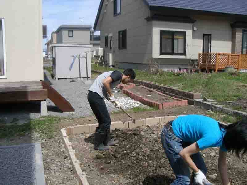 ちなみに除けた土は大きな石と雑草を取り除いて、芝張り(予定)地に撒いときます。小石は取り除きません。土ばかりだと多分水はけ悪くなると思うので。