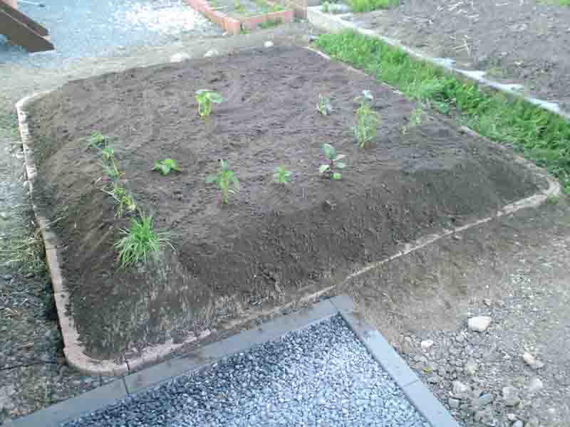 そんな訳で今日は仕事から帰ったあと、畑に堆肥(鷹栖町の生ごみ再利用の堆肥です)を混ぜ込み苗物の定植をしました。