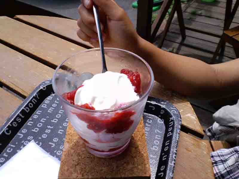 最初はソフトクリームが良いといってたのに、イチゴのカップアイスがあると聞いてそっちが食べたくなったみたいです。(gorodokuは小さいソフトクリームを注文)