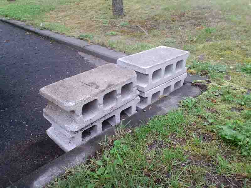 芝のこげ防止に、コンロの下に敷くためのブロックが各区画に配置されていますのでご利用を。