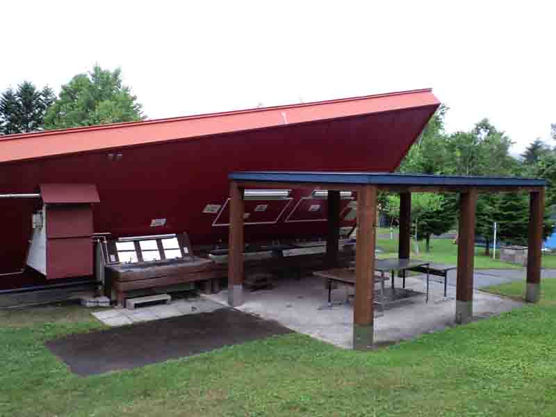 炊事場:トイレと傍からちょっと離れてこちらもサイトの両端に1棟ずつ。