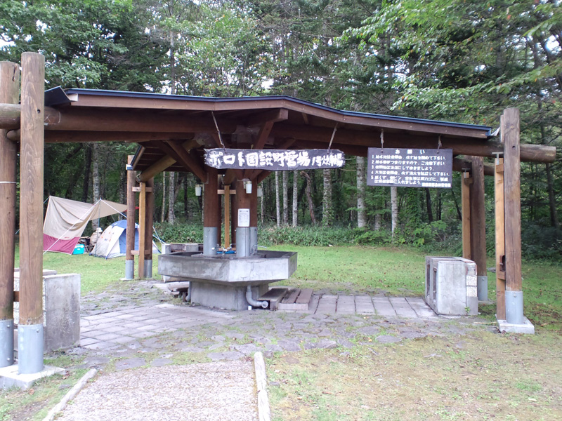 炊事場:トイレの近くに一棟、屋外炉つきです。蛇口の数はあまり多くないです。朝晩は混むかも。