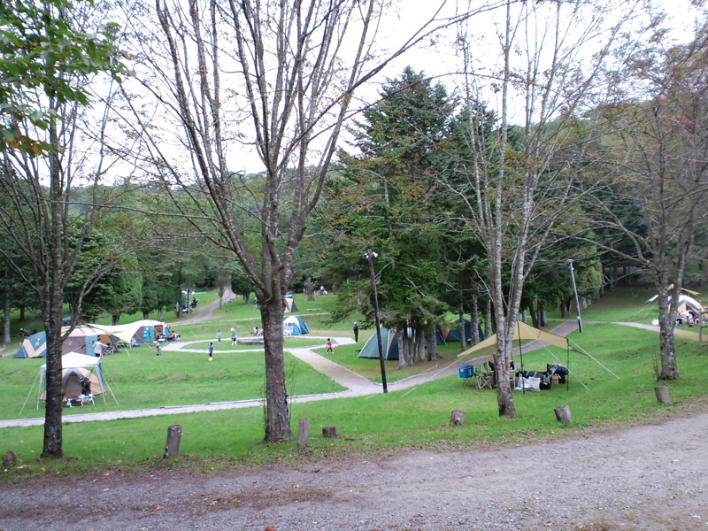 テントサイトは大雑把に言うと北側がやや開けた広場っぽいサイト、西南側が低地となっていてやや林の中っぽいサイトに分かれてます。下の写真は北西側のサイト。