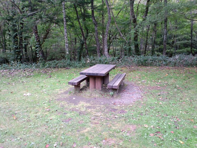 西南側低地のサイトには屋外テーブル・ベンチもあります。が数が限られているので、(テントの数が少ないけれど)近くは早く埋まっちゃいます。テントの総数は北側の拓けたサイトのほうが断然多いんですけどね~。