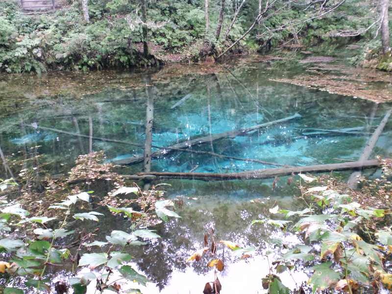 あいにくの小雨振りでしたが、湖底は青かったです、相変わらず。