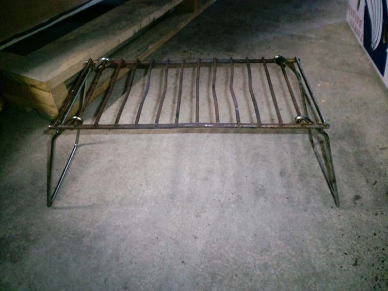 折りたたみの五徳も持って歩くといいでしょう。上の写真はメーカー不詳ですが、同じように足が折りたためて平らに収納できるのがたしかキャプテンスタッグあたりから出てるはずです。