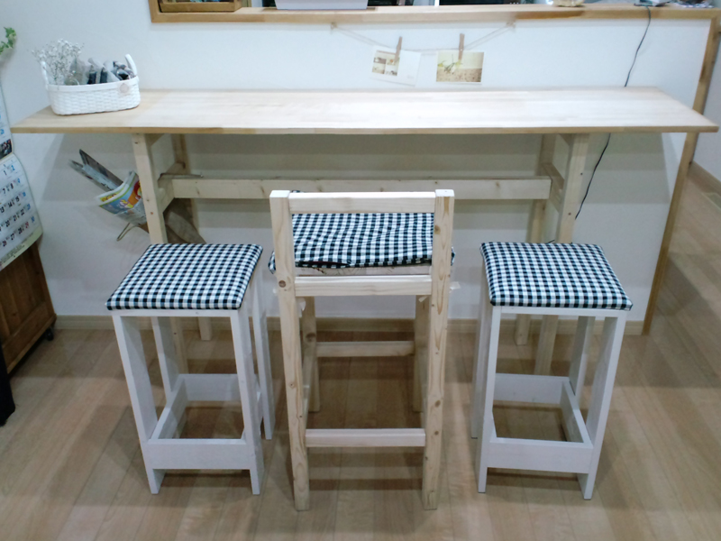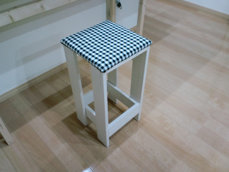 ただ新しいカウンターテーブルは高さがあるので、今までつかってた椅子ではちょっと低すぎるのでこちらも新しく作ることに。