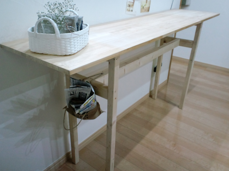 SPF材(ツーバイとかワンバイとかのインチサイズの規格材)を骨組に、パインの19mmの板を天板に使いました。