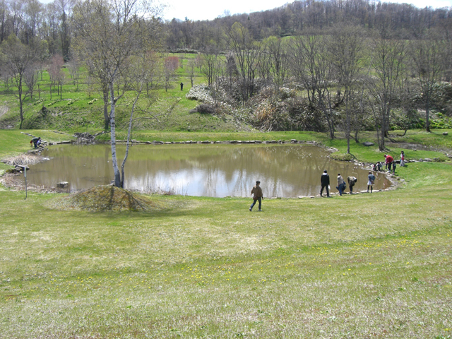 丘の上には池もあって、子供達が岸で遊んでたので