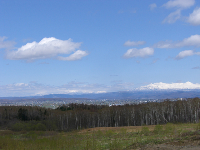 南南東の方角を見ると、鷹栖・旭川の街越しに大雪山、十勝岳連峰が良く見えるんです。