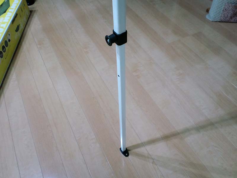 足のアップ。二重に差し込んだ角パイプがスライドして伸縮します。高さは2段階調整つき。
