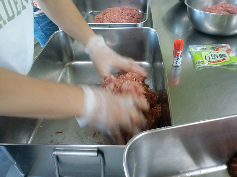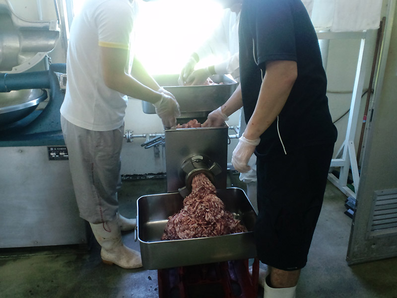 そのままソーセージにしてもいいんですが、混ぜるものを持参すれば色々味付けすることも出来ます。