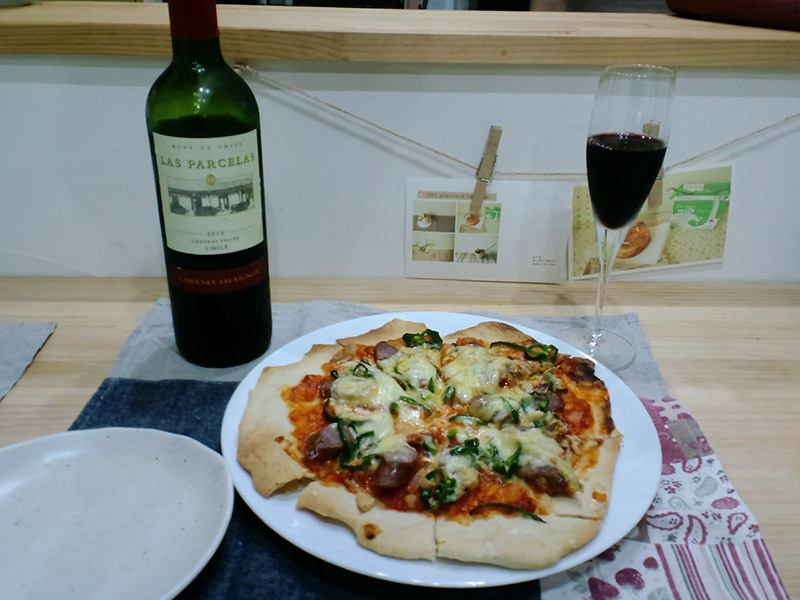 そんな訳で本日の夕飯は早速このソーセージを使ってピザを作りました。