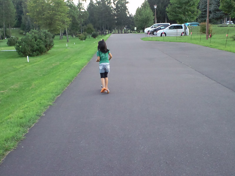子供が遊ぶのに持って歩いたりするんですが、オートキャンプ場とか広くて歩いてあちこち行くのもちょっとだるい時、舗装のされてるところは親も借りて使ってまーす。