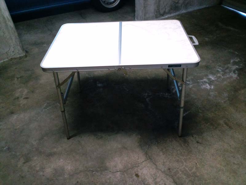 あとテーブルはもう一つキャンコレの天板と足を折りたたむタイプのを使ってますが、やはり若干スペースを取ります。狭い車内の隙間に差し込むのはちょっと大変なのでだいたいいつも荷物の下敷きになってます。