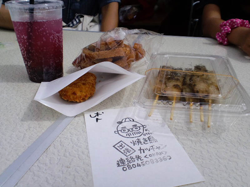 焼鳥・コロッケ・ラスク買っちゃました。娘はトロピカルドリンクも。
