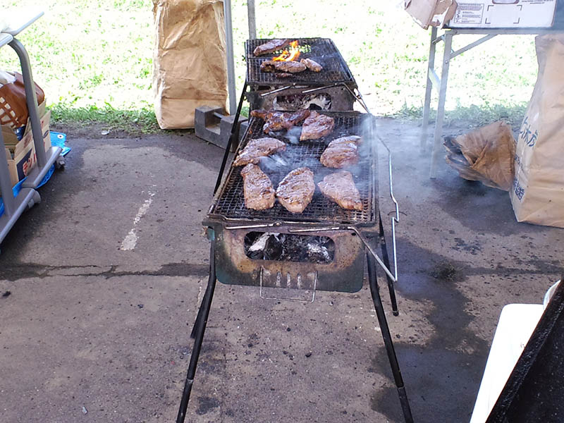 食べ物やさんもいっぱい出店してましたが、その中でも鳥の半身焼と牛ステーキ屋さんは人気でしたなー。
