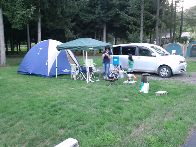 サイト:オート・フリーともにやや雑草混じりの芝。我が家が利用したときには若干延び気味でしたが、伸び放題ってわけでもないのでそれなりに刈られてる、と思います。傾斜はなし。泊まった奥様の話によると若干大きな石が表面に出てるところもあるようなのでゆったり寝るには厚めのマットがあったほうがいいかも。
