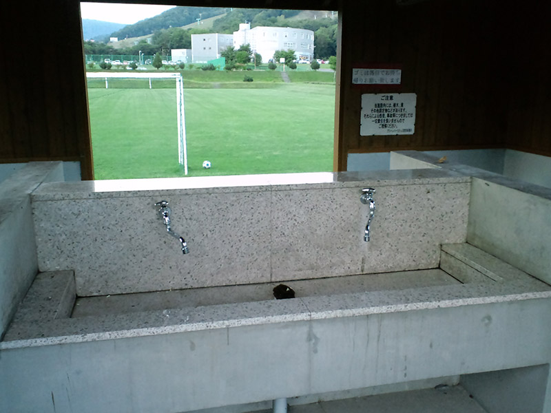 炊事場:こちらもオートサイトのすぐそばに。それなりに綺麗なんですが蛇口が4つしかないので食事時前後には混むかもしれませんね。