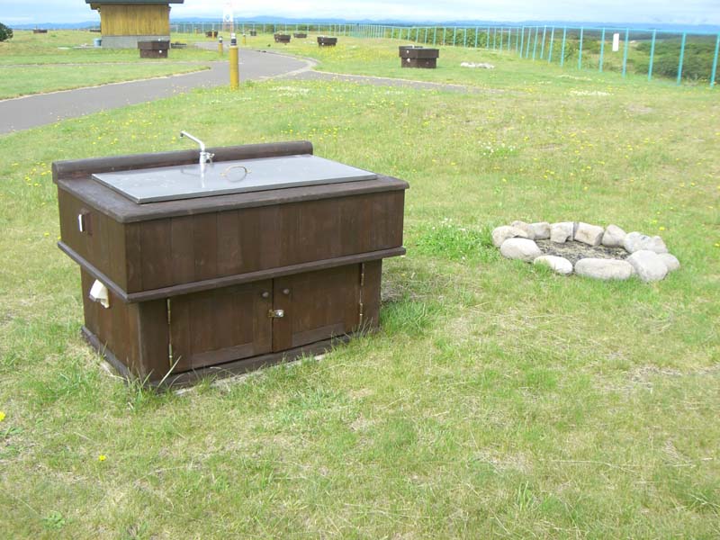 遊具:キャンプ場内には特に遊具類はありません。とままえ温泉ふわっとを挟んで反対側にちょっとした公園があり、滑り台などがあります。サイトの下には夕陽ヶ丘ホワイトビーチがあります。