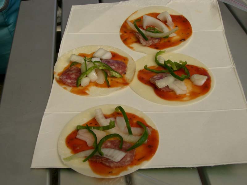1.玉ねぎは薄切り、ピーマンは輪切り、サラミはスライスする。