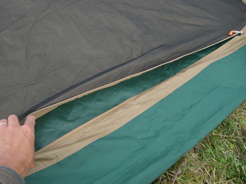 二つ重ねると写真のようになります。インナーがやや長いので、フライに合わせて端をちょっとだけ折り込んでます。ちょっとわかりにくい写真になってしまいましたね
