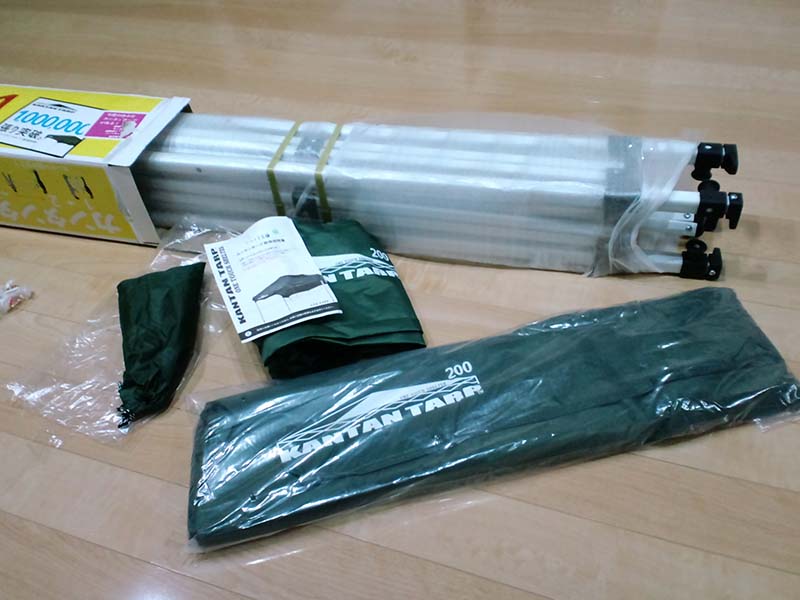 えーとホーマック(北海道のDIY店です)のチラシにつられて2m×2mのかんたんタープ買っちゃいました。