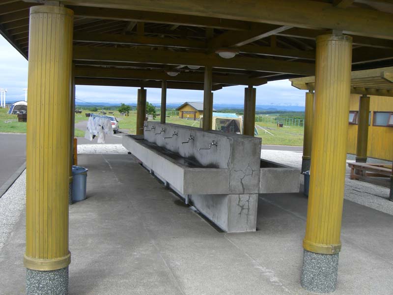 炊事場:センターハウスの裏手にあります。さらにその裏手にはゴミ置き場があります。ゴミを置いて行かれる方向けに専用の袋をセンターハウスで販売してます。